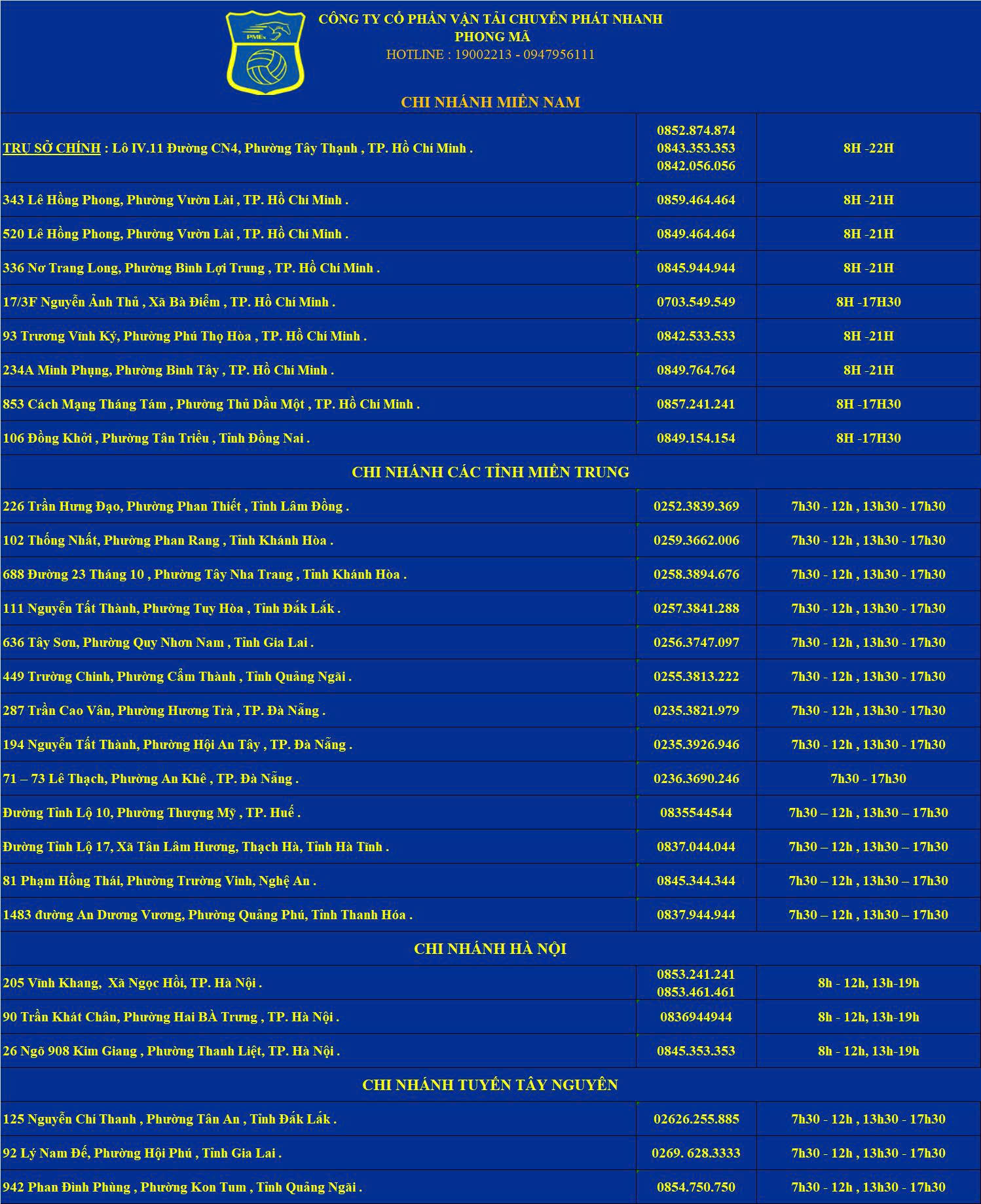 CÔNG TY CỔ PHẦN VẬN TẢI CHUYỂN PHÁT NHANH PHONG MÃ
